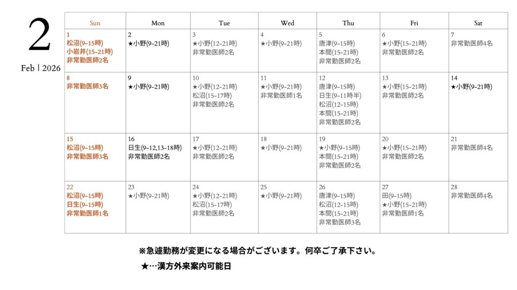 【2月】常勤医師勤務表(エキナカ)
