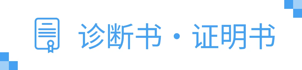 ※1:如公司体检证明、健康体检证明、根据用途不同可能需要的诊断书、生命保险诊断书、通院证明书、说明书、疾病名称证明书、资格申请用的诊断书、精神障碍・身体障碍证明书等。